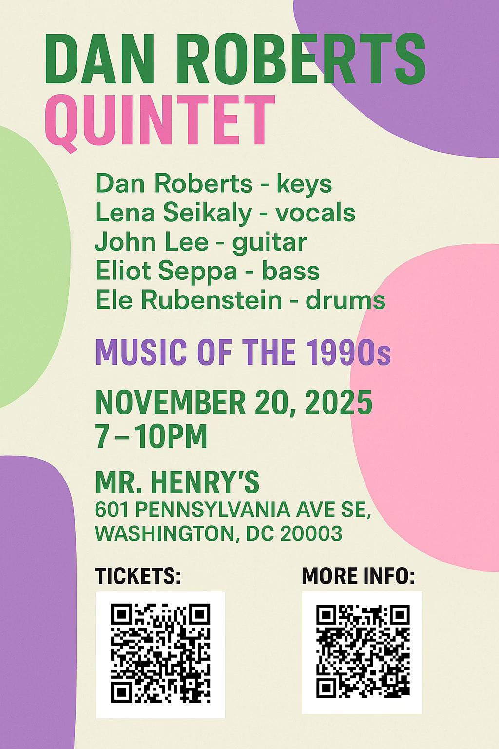 1. 🎹 Do you like jazz? Are you a child of the 90s? Do you live in DC? If so, go watch my little brother’s jazz quintet cover 90s songs on Nov. 20! I’m so bummed I can’t go. Find tickets here.