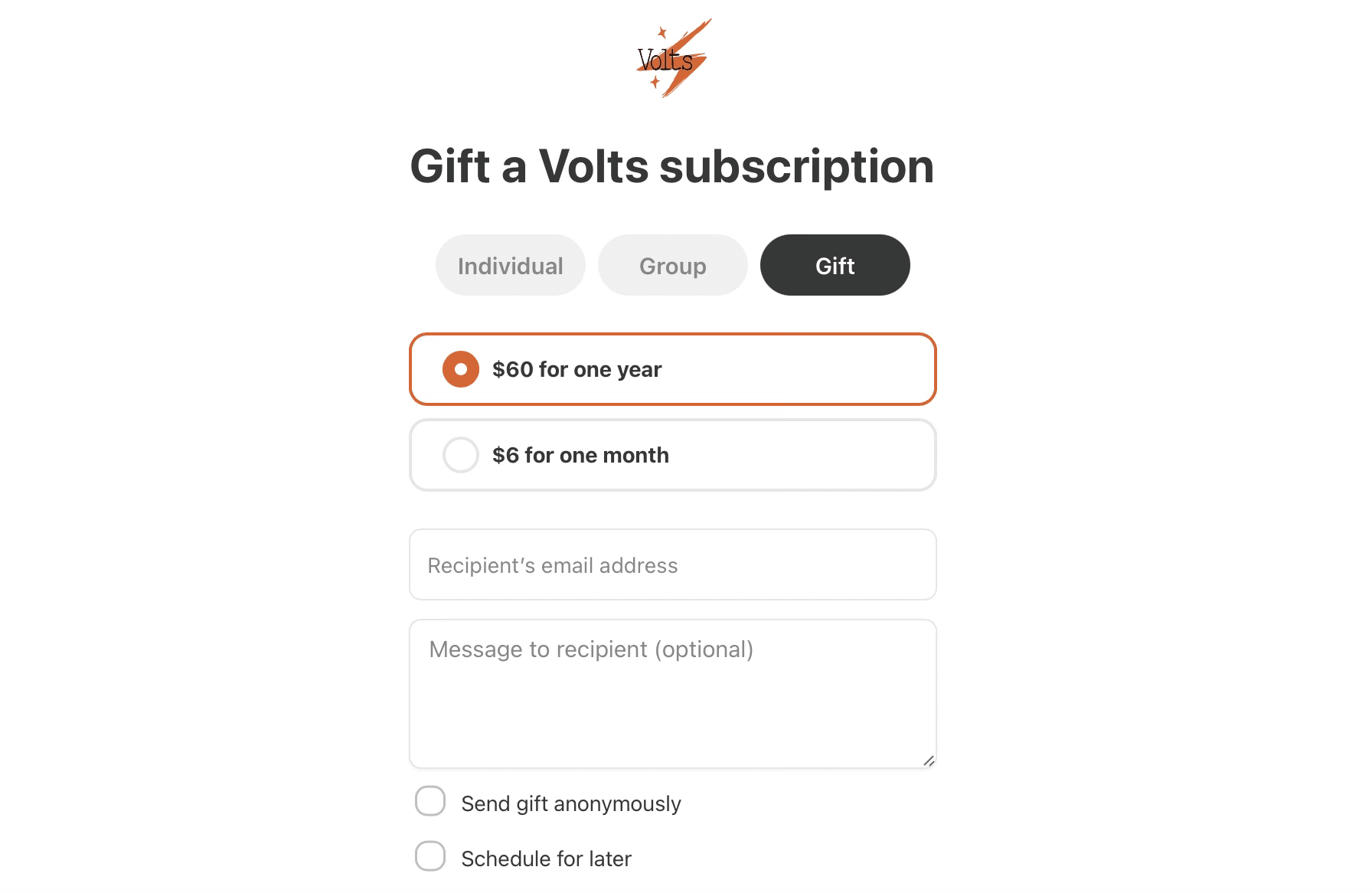Gift a loved one a Volts subscription today: https://www.volts.wtf/subscribe?gift=true